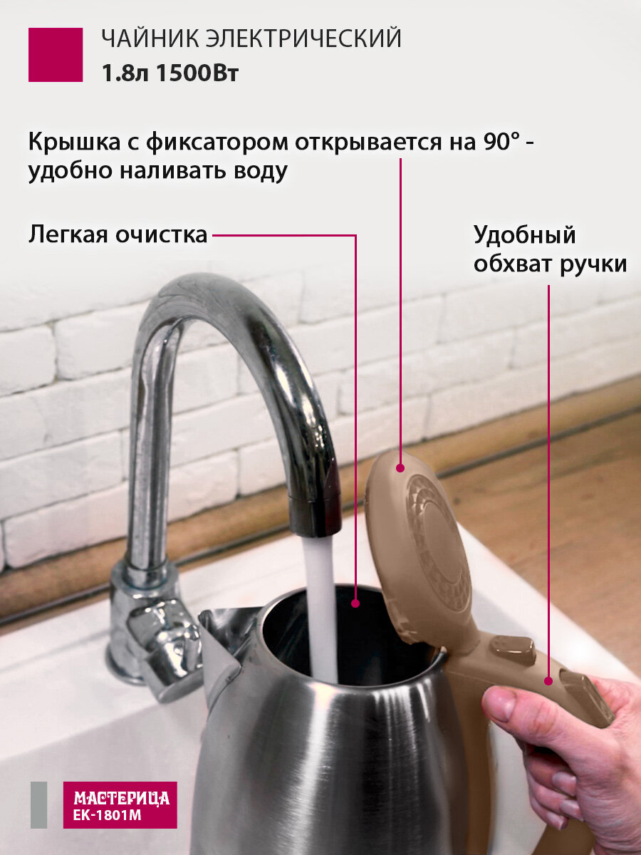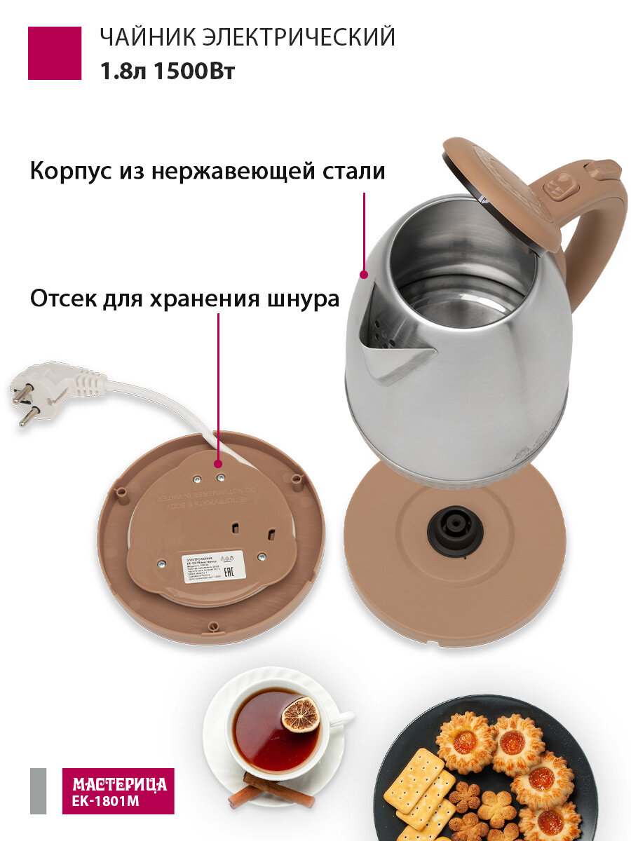 Электрочайник Чайник электрический Мастерица EK-1801М, капучино, 1,8л, нержавейка