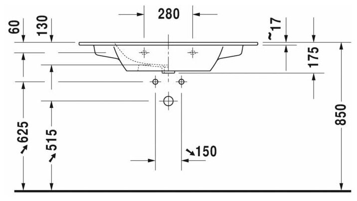 Умывальники Duravit Me by Starck Раковина мебельная 1030 x 490, с 1 отв. под смеситель, белая, арт 233610 00 00