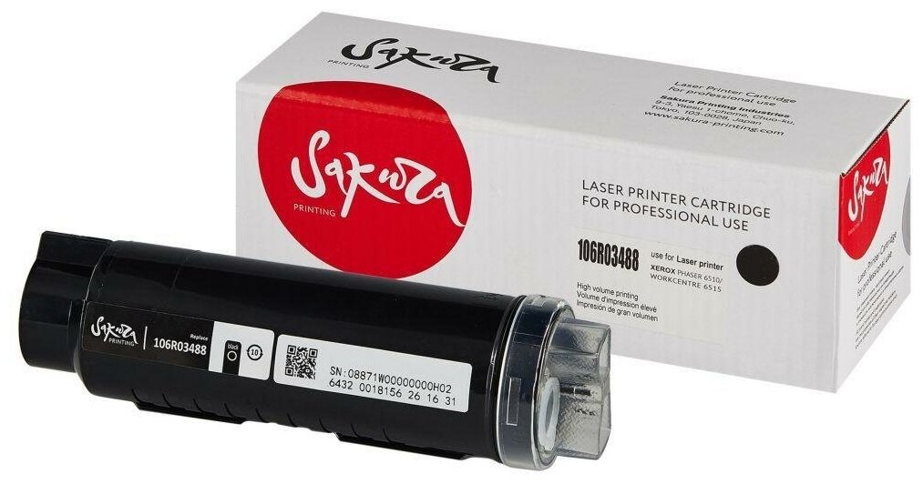 Картридж Sakura Printing Sakura 106R03488 для XEROX Phaser6510N/6510DN/6510DNI/WC6515N/6515DN/6515DNI, черный, 5500 к.
