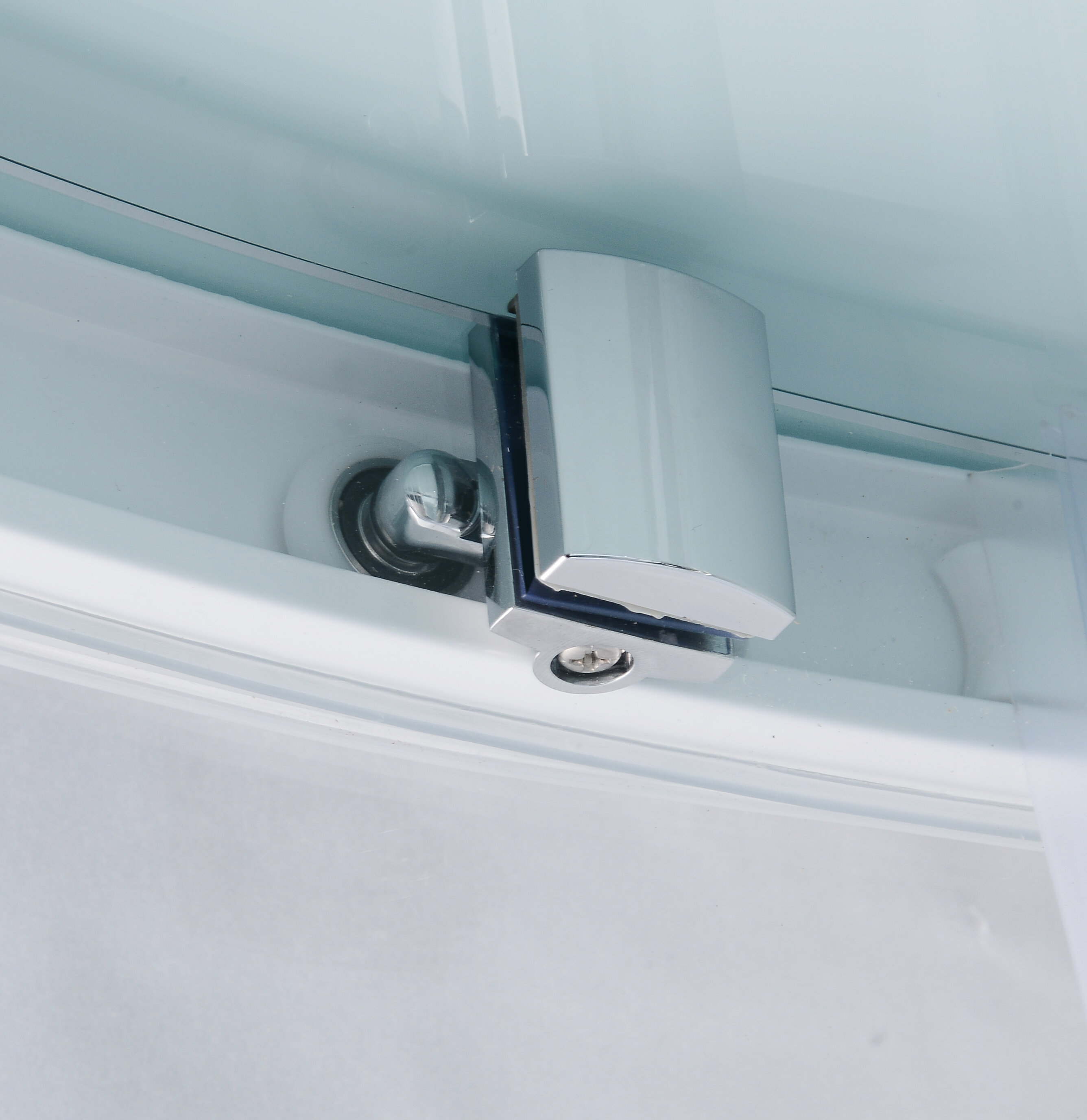 Лучшие цены. "Бессиликоновая сборка. 1. Стекла примыкающие к стенам цвет ""Smoky white"", остальные прозрачные, толщина 6mm, 2 раздвижные двери. Серая стеклянная центральная панель 2. Белый Алюминивый профиль 3. Сенсорная панель управления 4. Экран поддона на защелках Верхний и ручной душ с LED подсветкой, каскадный излив ""Водопад"", латунный смеситель, 6 форсунок гидромассажа, вентиляция, FM радио, сифон Поддон 150 mm. Магазины в вашем городе.