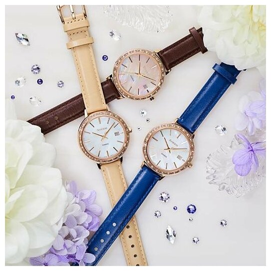 Лучшие цены. Женские кварцевые часы с кристаллами Swarovski в круглом корпусе на кожаном ремешке. Японская компания «Casio» известна созданием портативной электронной и вычислительной техники. В производстве часов «Casio» славится надежным качеством часовых механизмов, производимых, в основном, в Японии, разнообразием встроенных функций, а также широким ассортиментом с четко обозначенными модельными рядами, помогающими покупателю выбрать нужные часы. Магазины в вашем городе.