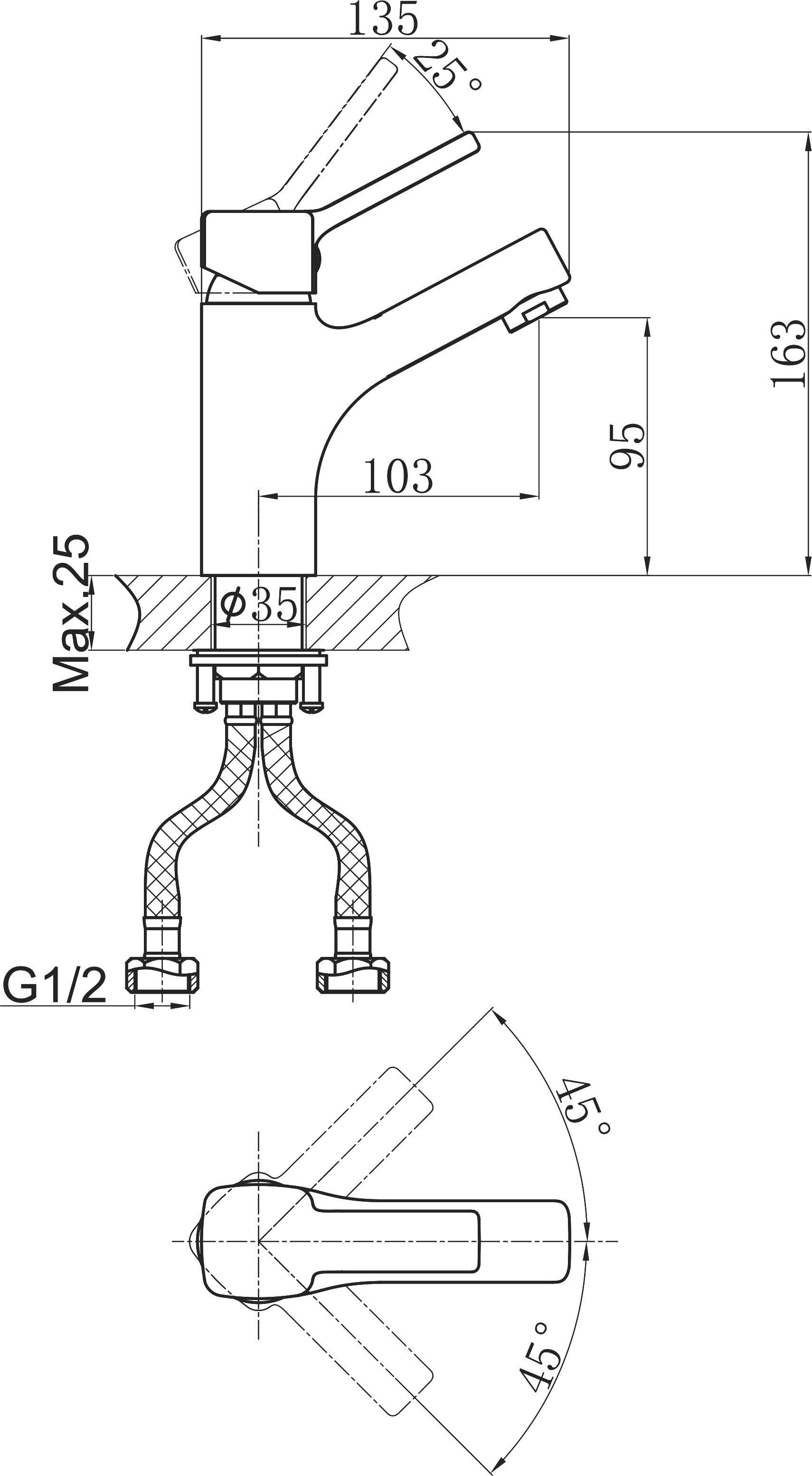 | Подвод воды | шланги / 450 мм / G 1/2" |