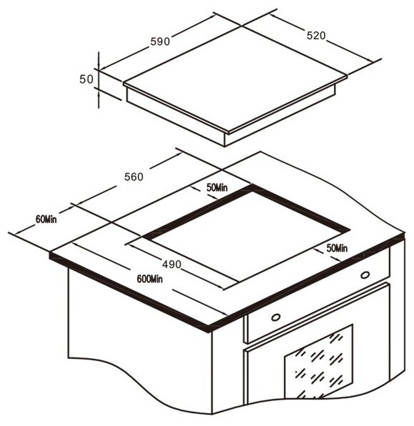 | Размеры для встраивания (ШхГ) | 560x490 мм |