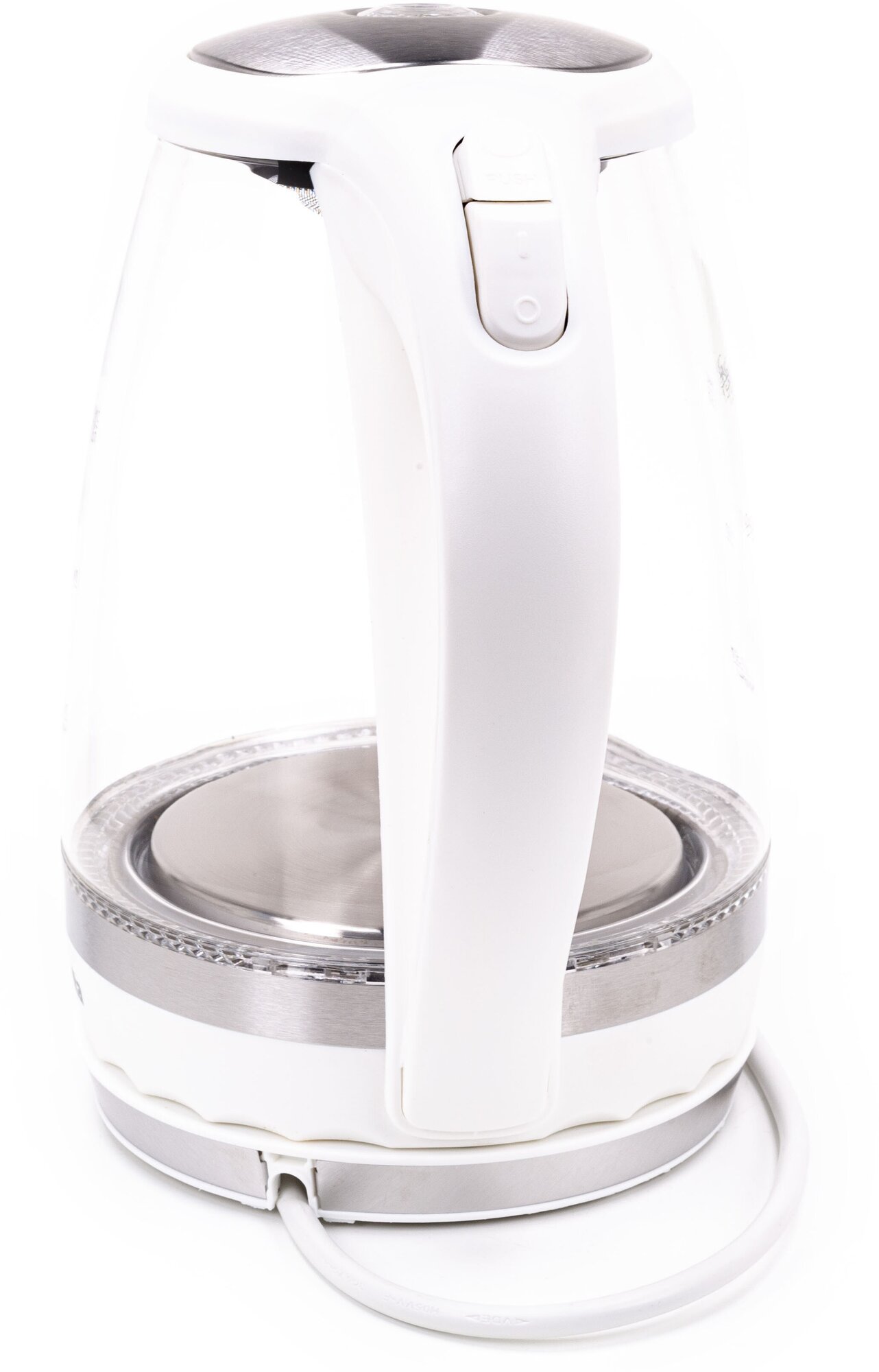 Электрочайник DELTA DL-1202, корпус из жаропр. стекла, белый: 2200 Вт, объем 1,5 литра