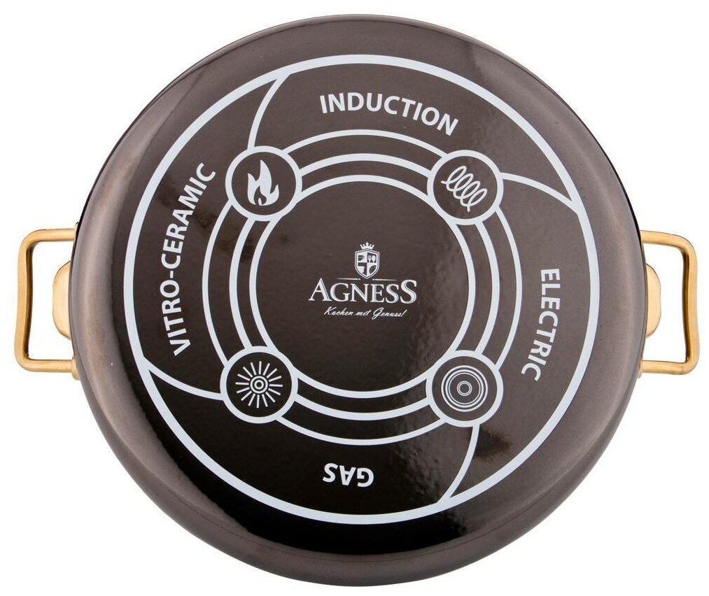 Лучшие цены. Сотейник эмалированный со стекл. крышкой и антипригар. мраморным покрытием, 28см / 4,5л Agness (950-225). Магазины в вашем городе.