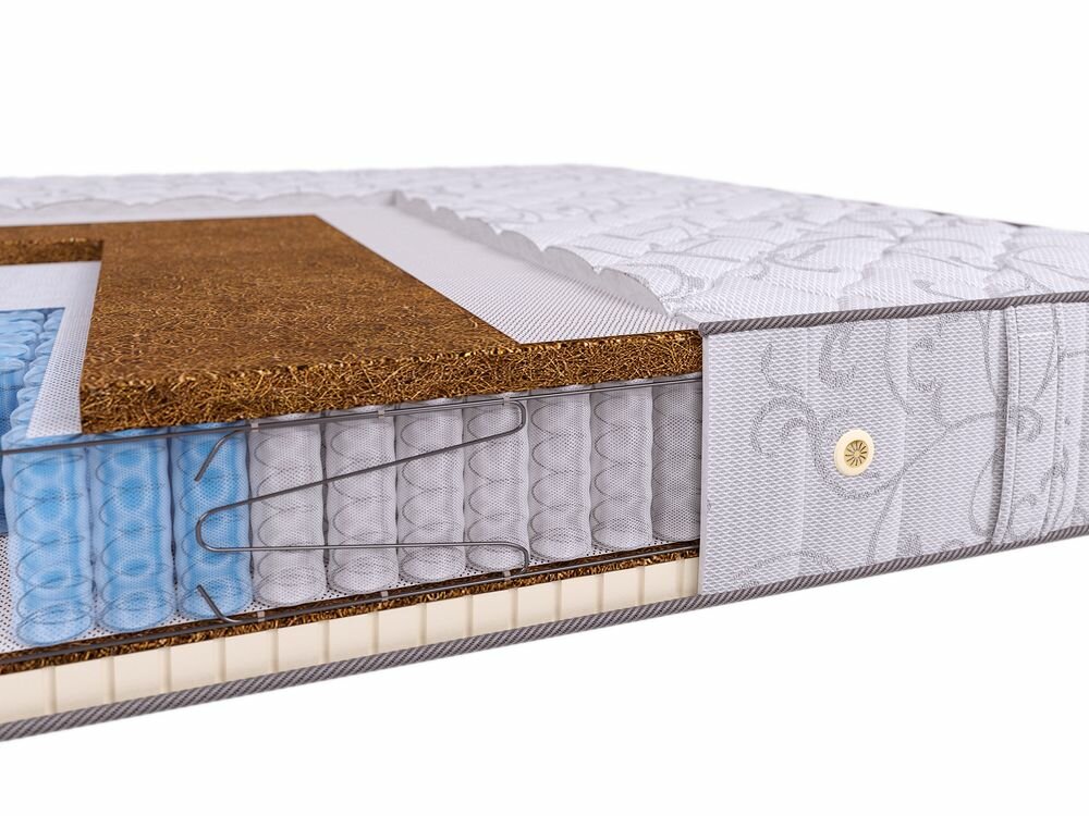 Лучшие цены. Пружинный матрас Hit Vario S1200 разносторонней жесткости выполнен из натуральных материалов: латексированной кокосовой койры и натурального латекса на независимом 5-ти зональном пружинном блоке «Multipocket» (500 пр/м2) с усилением по периметру Z пружинами, который равномерно распределяется нагрузку тела и создает правильную поддержку позвоночника во время сна. Матрас выполнен методом пристрелки без применения клея. Магазины в вашем городе.