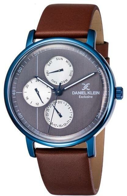 Лучшие цены. Мужские наручные часы Daniel Klein 12005-5 в классическом стиле с оригинальным дизайном циферблата. Кварцевый механизм с высокой точностью +/- 20 сек в месяц. Отображение времени в часовом формате 12/24 часа. Прочное минеральное стекло обеспечит защиту часов от повреждений. Водонепроницаемость 30WR (3 Бар) защитит Ваши часы от брызг и дождя, но плавать в них нельзя. Ударопрочный корпус часов сделан из прочной нержавеющей стали с высокими антикоррозийными свойствами. Ремешок из натуральной кожи. Магазины в вашем городе.
