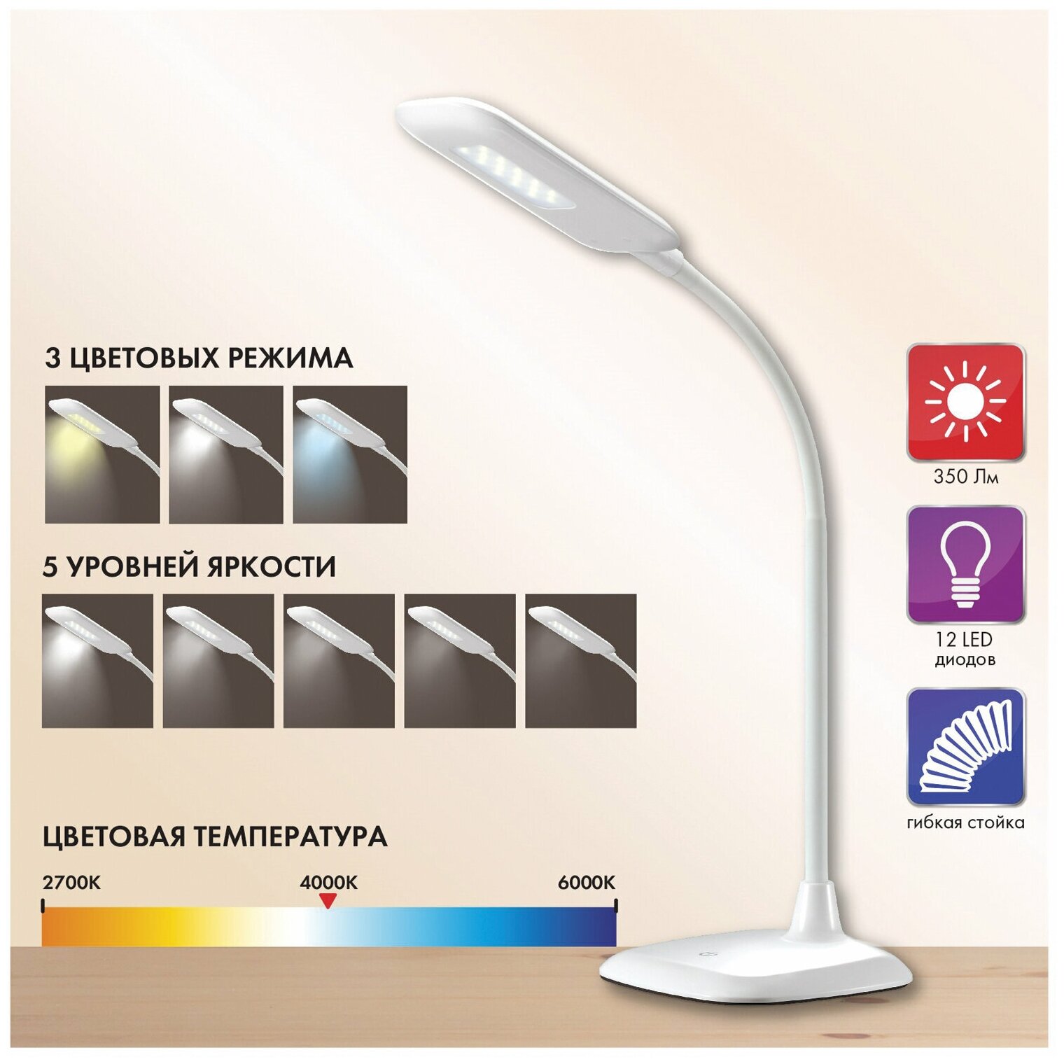 Светильник настольный Sonnen BR-819A, на подставке, светодиодный, 8Вт, белый (236666)