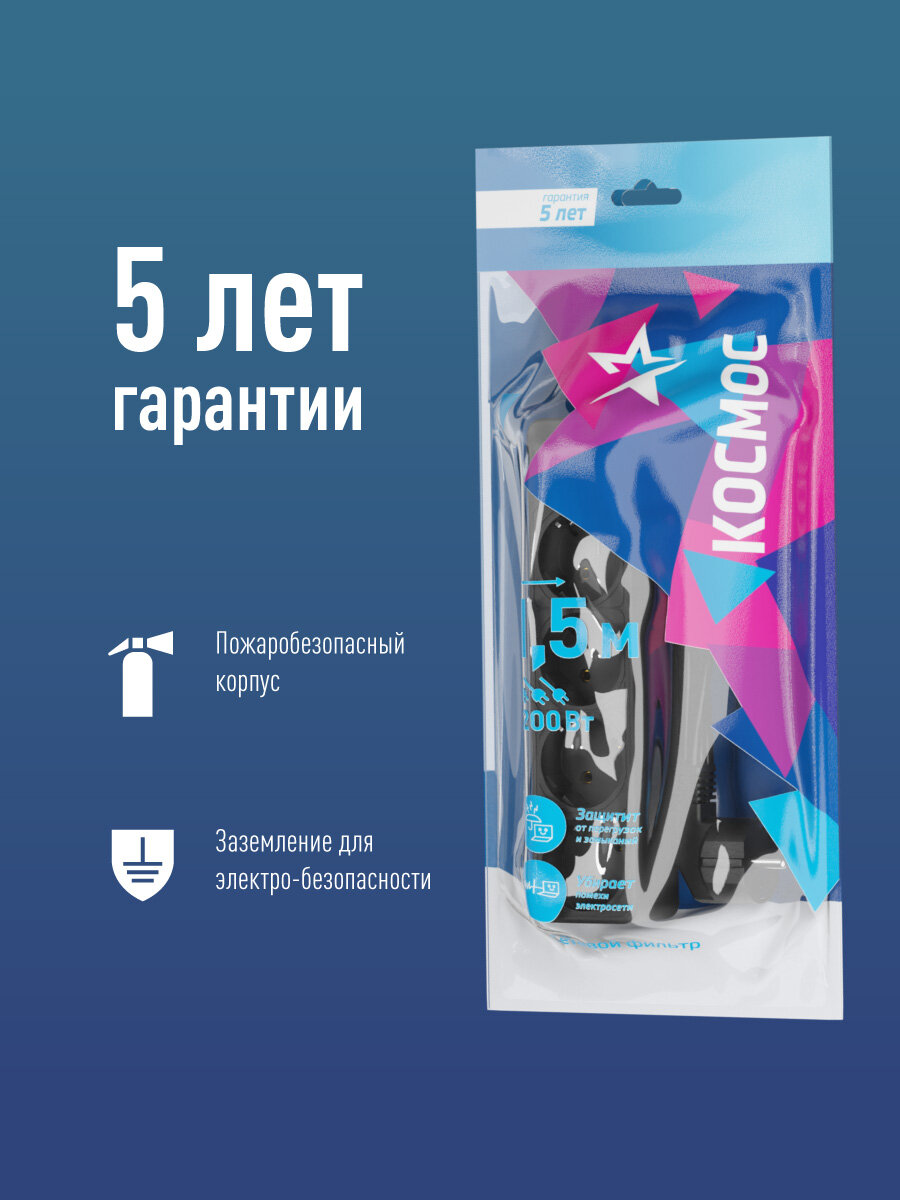 Лучшие цены. Сетевой фильтр космос 1,5м, 4 гнезда, пвс 3x0,75мм2, черный защищает устройства от выхода из строя из-за некачественного тока: защита от перегрузок и замыканий многоразовой автоматикой; защита от импульсных помех, часто встречающихся в бытовой электросети. Отлично подходит для подключения чувствительной электроники: компьютеров, телевизоров, стереосистем и др. Максимальная мощность - 2200Вт, что достаточно для одновременного подключения 2 ноутбуков, телевизора, игровой приставки, и любого мощного устройства. Магазины в вашем городе.