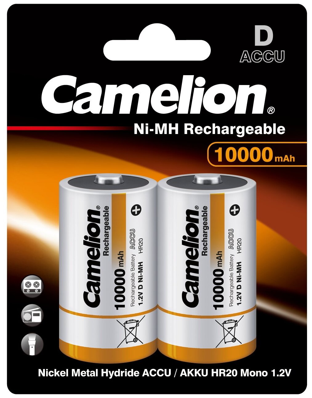 Аккумуляторы и батарейки Аккумулятор Camelion D-10000mAh Ni-Mh BL-2 NH-D10000BP2, 1.2В