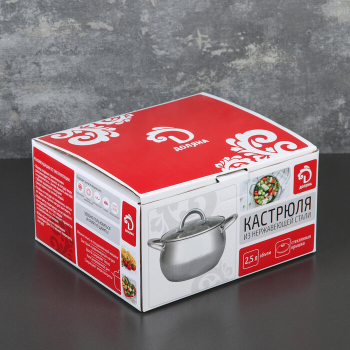 Кастрюля "Доляна" «Вернер», нержавеющая сталь, d=18 см, 2.5 л, с крышкой