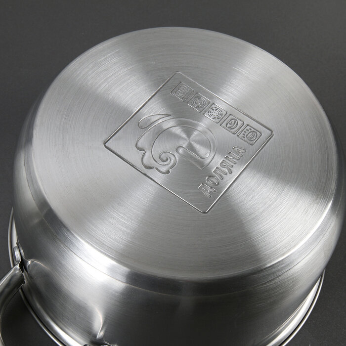 Лучшие цены. Кастрюля выполнена из нержавеющей стали марки AISI 201. Металл быстро проводит тепло и противостоит коррозии. Благодаря капсулированному дну посуду можно использовать на индукционной плите.Толщина стали — 0,4 мм. Магазины в вашем городе.