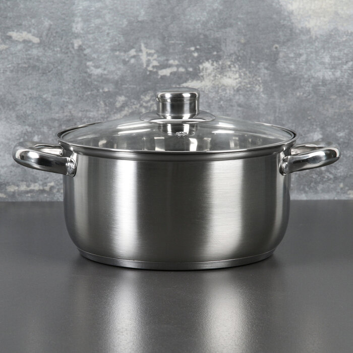 Кастрюля из нержавеющей стали Доляна "Гретте", 3,2 л, d=20 см, стеклянная крышка, капсульное дно, индукция