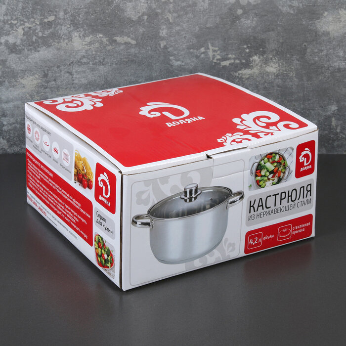 Кастрюля из нержавеющей стали "Доляна", 4.2 л, d=22 см, с крышкой, индукция