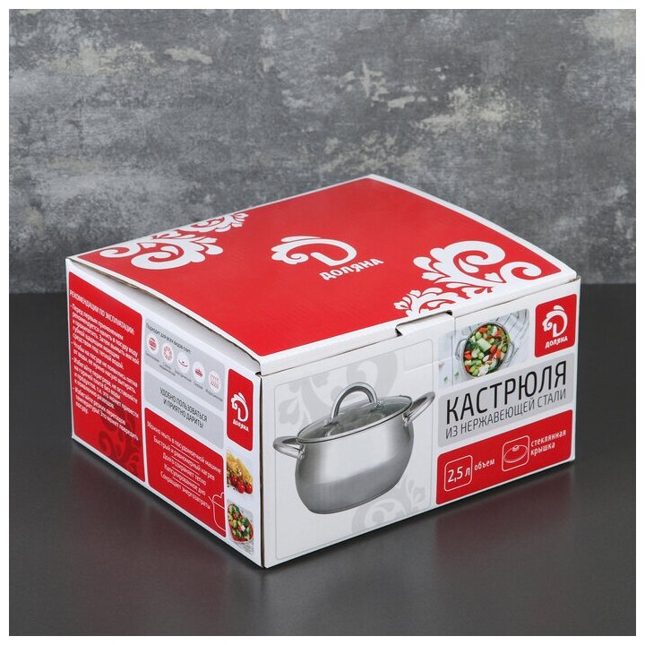 Кастрюля Кастрюля Доляна «Вернер», 2,5 л, d=18 см, стеклянная крышка
