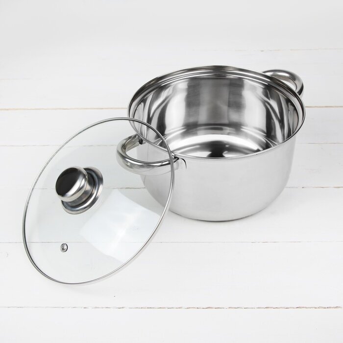 Набор посуды из нержавеющей стали Доляна "Классика", 8 предметов: ковш 1.5 л, 2 кастрюли 2/3 л, сковорода d=24 см, крышки, стенки 0.3 мм, дно 5 мм 3 122 ₽ Подробнее