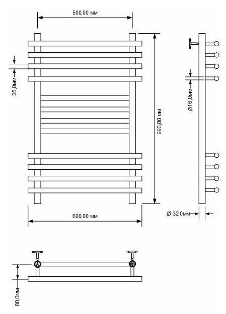 Полотенцесушитель Aquanet Largo 00266746 1000x500, хром