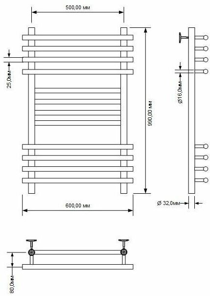 Полотенцесушитель Aquanet Largo 00266746 1000x500, хром
