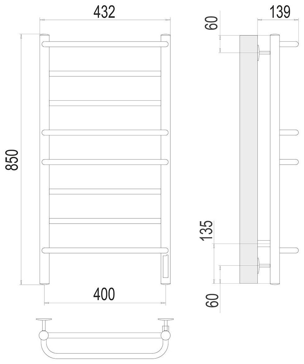 Евромикс (скрытая проводка) электрический полотенцесушитель TERMINUS (432 мм / 850 мм / 400 мм)