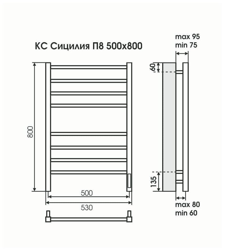 Полотенцесушитель электрический TERMINUS Сицилия П8 500х800 электро КС 9003 матовый