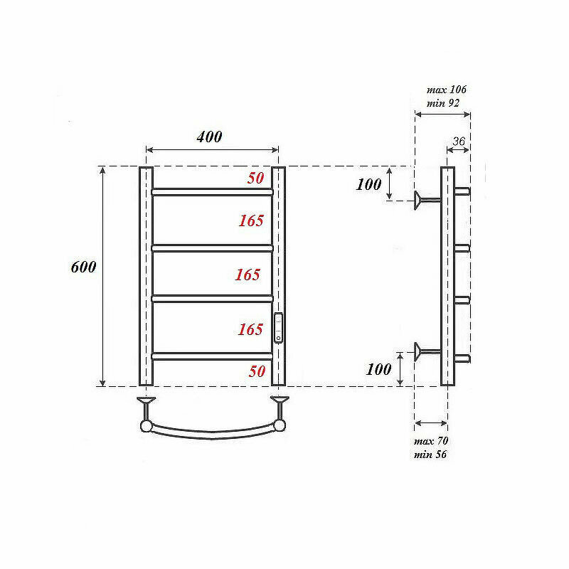 Полотенцесушитель электрический 400x600 POINT Афина (PN04846 П4) диммер справа