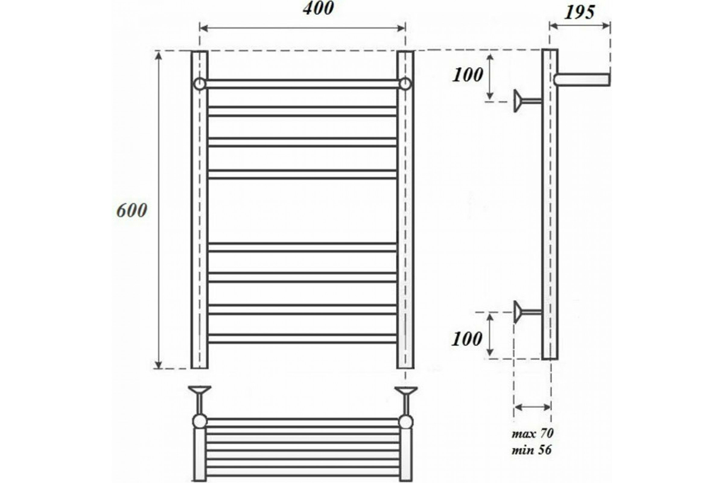 Лучшие цены. Форма: лесенка; Терморегулятор: нет; Материал: нержавеющая сталь; Количество секций: 7; Количество полок: 1; Направление подключения: нижнее; Цвет: хром; Ширина: 43.2 см. Магазины в вашем городе.