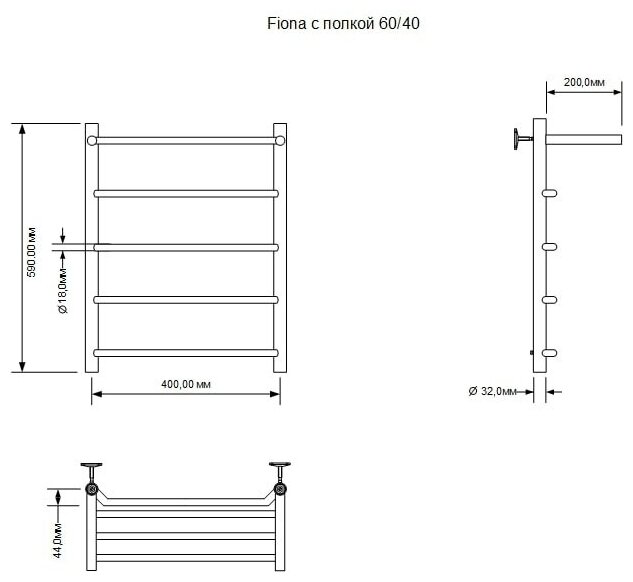 Полотенцесушитель Полотенцесушитель водяной Aquanet Fiona с полкой 600x400, хром