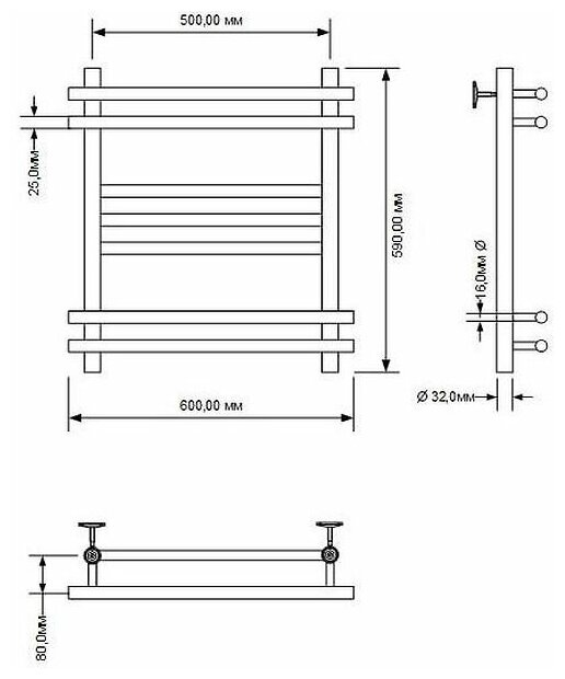 Полотенцесушитель Полотенцесушитель водяной Aquanet Largo 600x500, хром