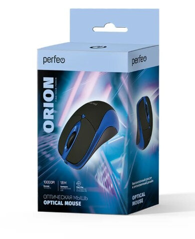 Мышка Мышь PERFEO ORION USB чёрный/синий (PF_A4792)