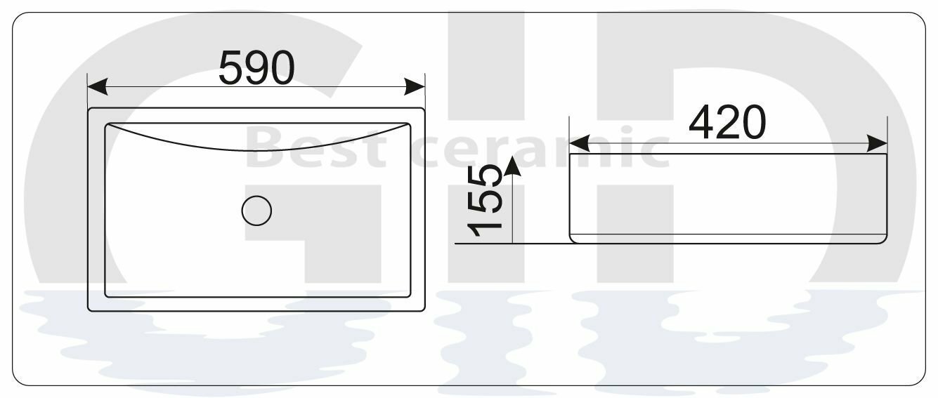 (59х42х15.5см) Керамическая накладная раковина Gid N9121