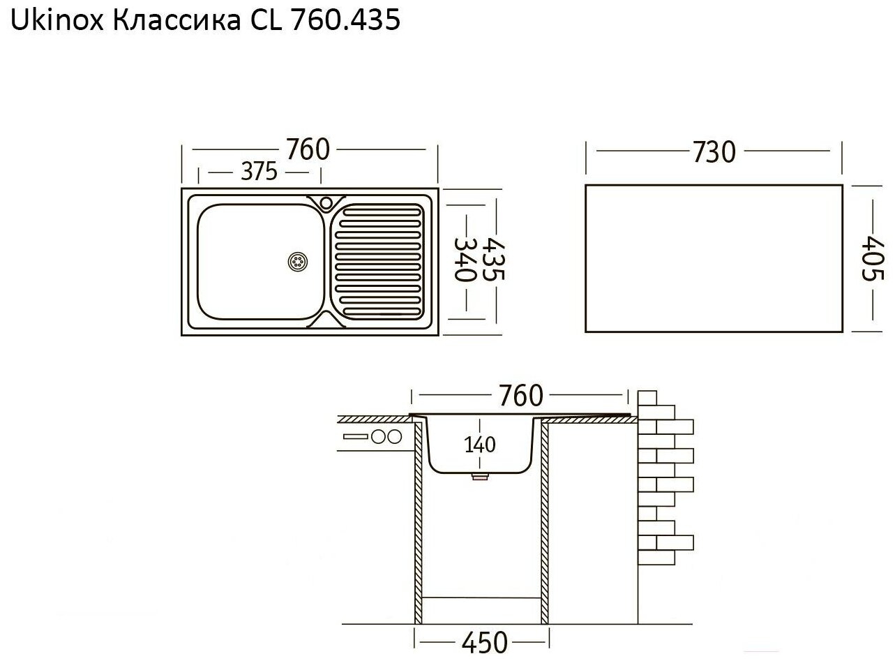 Мойка врезная UKINOX Классика правая 76*43.5см CLM760.435-5K 1R