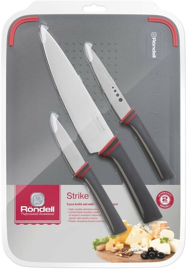Набор ножей Rondell Strike RD-1491 GR 3шт+1 разделочная доска графитовый