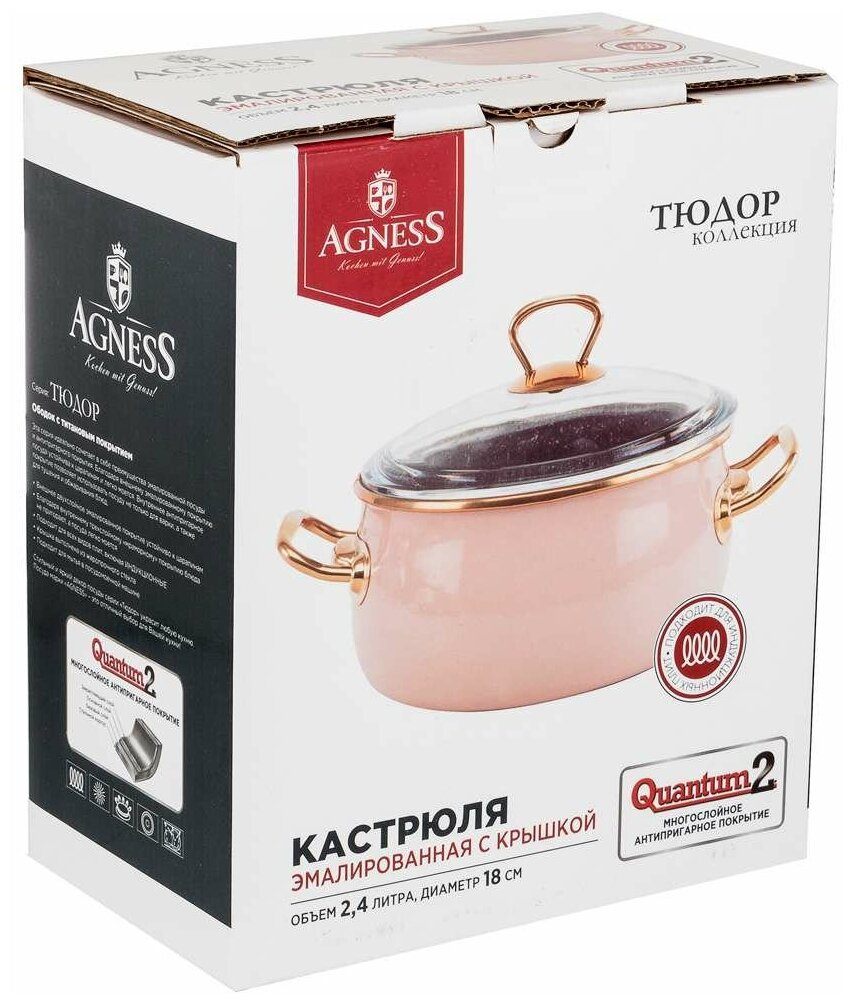 Лучшие цены. кастрюля эмалированная со стекл. крышкой и антипригар. мраморным покрытием, 18см/ 2,4л. Серия Тюдор идеально сочетает преимущества эмалированной посуды и посуды с антипригарным покрытием. Благодаря внешнему эмалированному покрытию посуда устойчева к царапинам и легко моется. Внутреннее антипригарное покрытие позволяет использовать посуду не только для варки, а также для тушения и обжаривания блюд. Магазины в вашем городе.