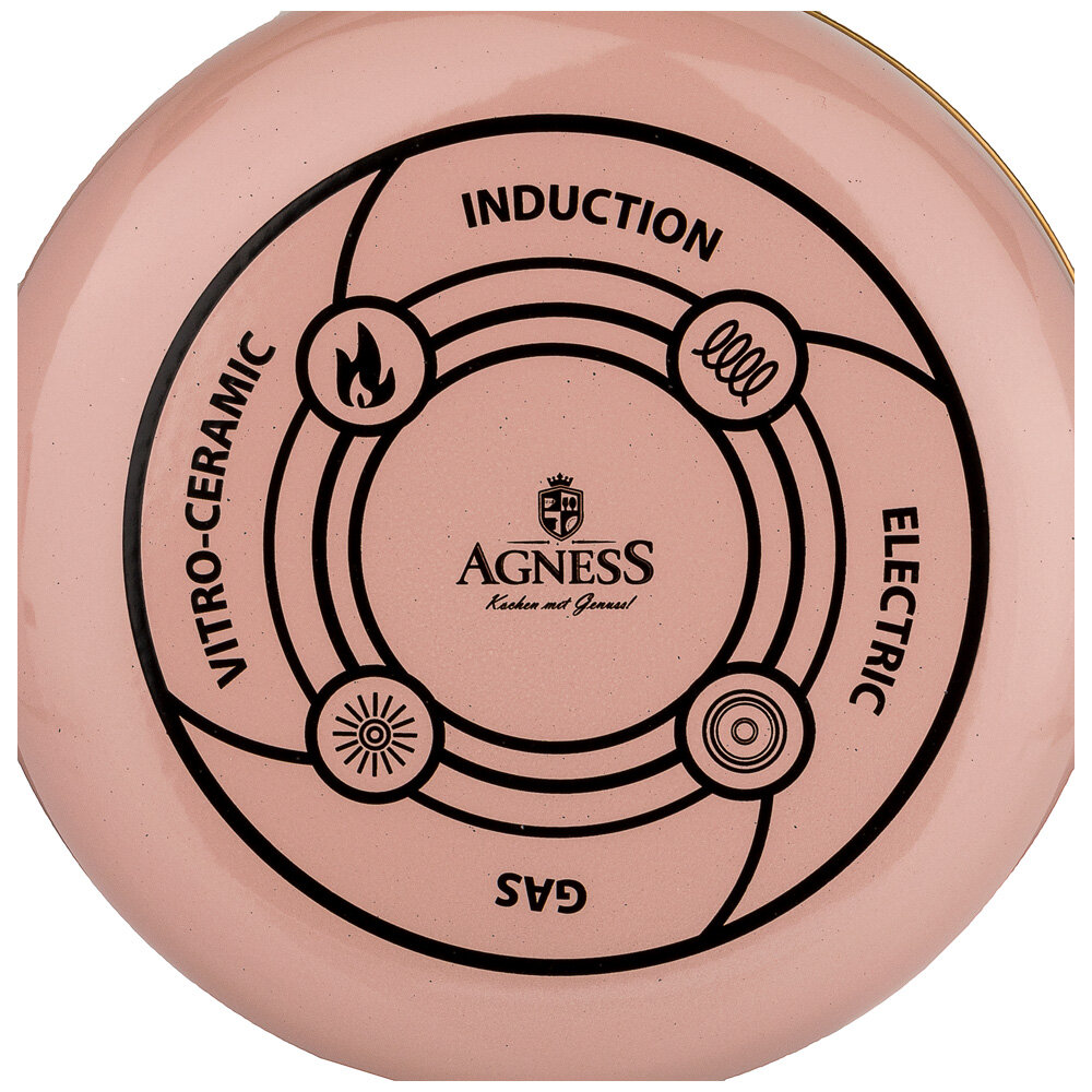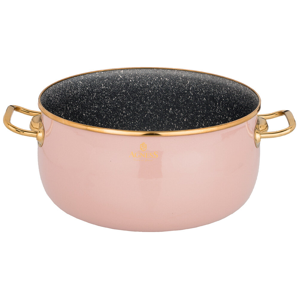 Кастрюля эмалированная Agness 24см / 5,3л, антипригарная, индукция, пудрово-розовый (950-273)