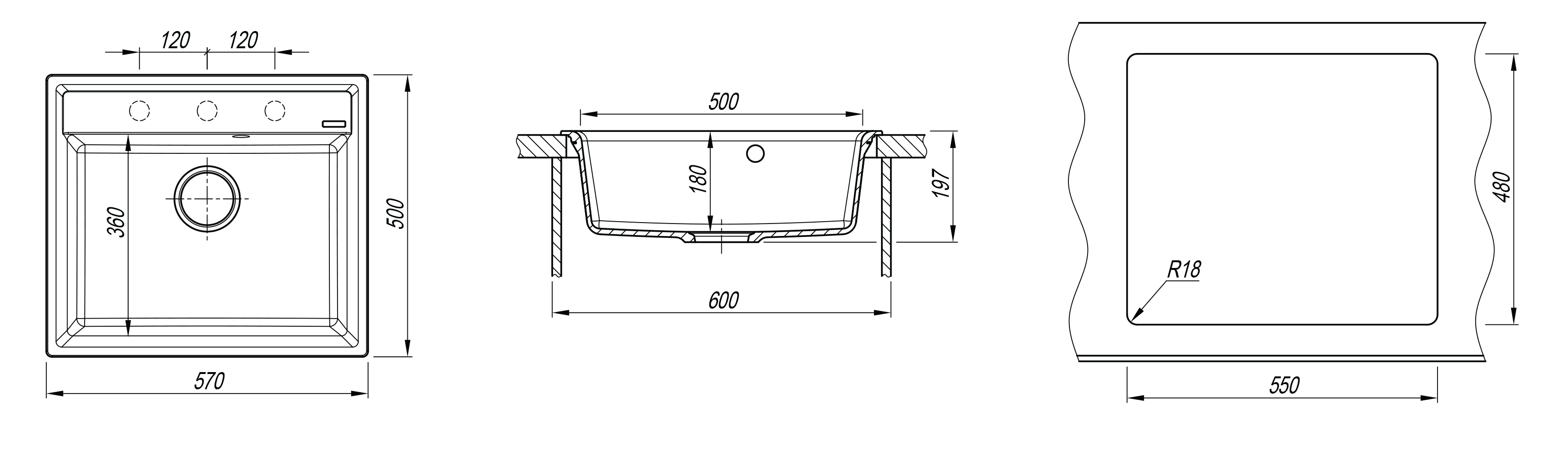 | Размеры врезного отверстия (накладная) | 550x480 мм (угловой радиус врезки: 18 мм) |