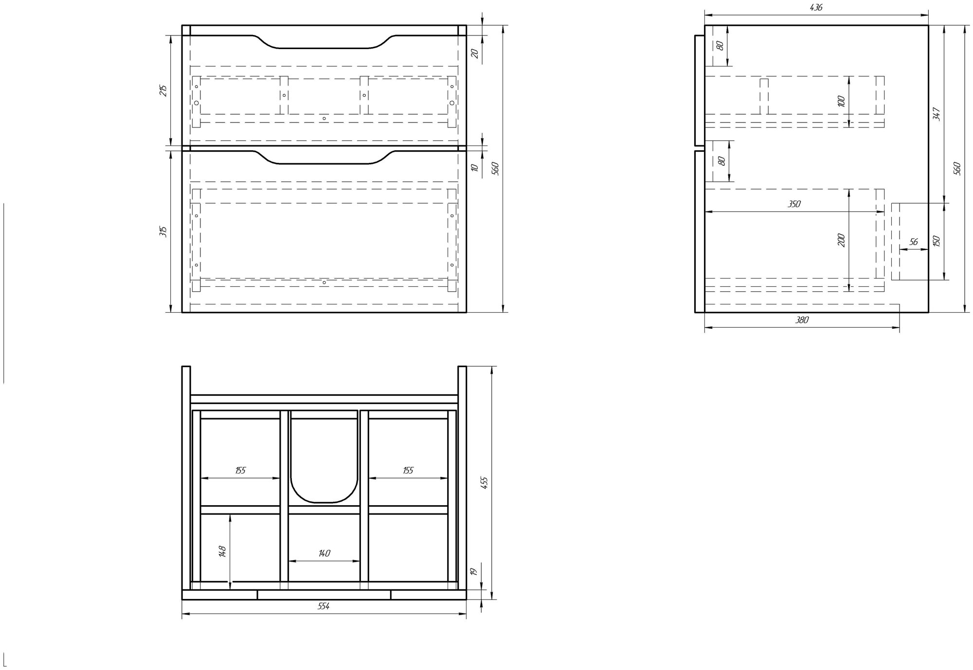 Тумба Dreja Q 60, 99.0001, подвесная, 2 ящика, белый глянец