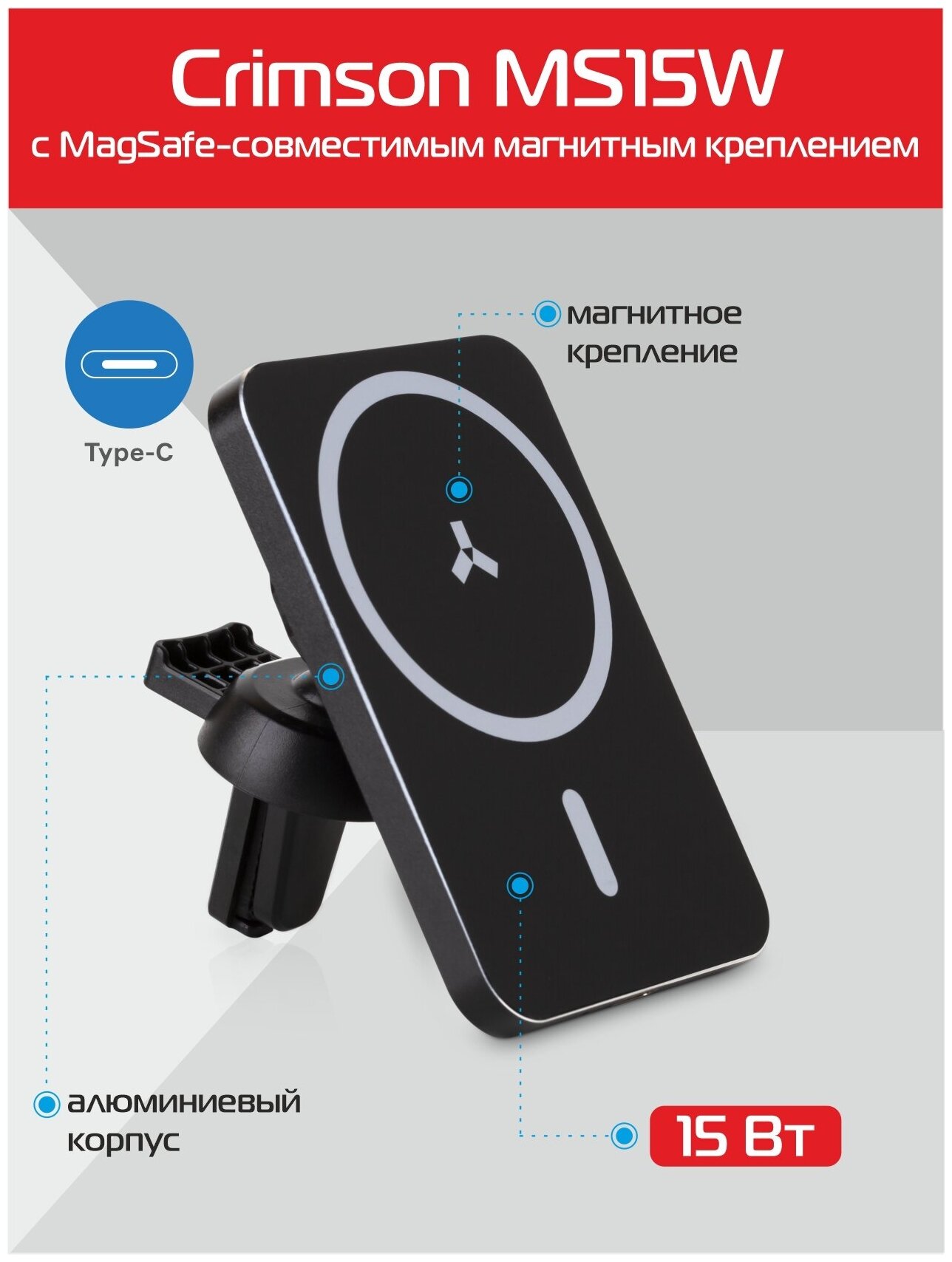 Автомобильное зарядное устройство Crimson MS15W, беспроводное, QC 3.0, черное