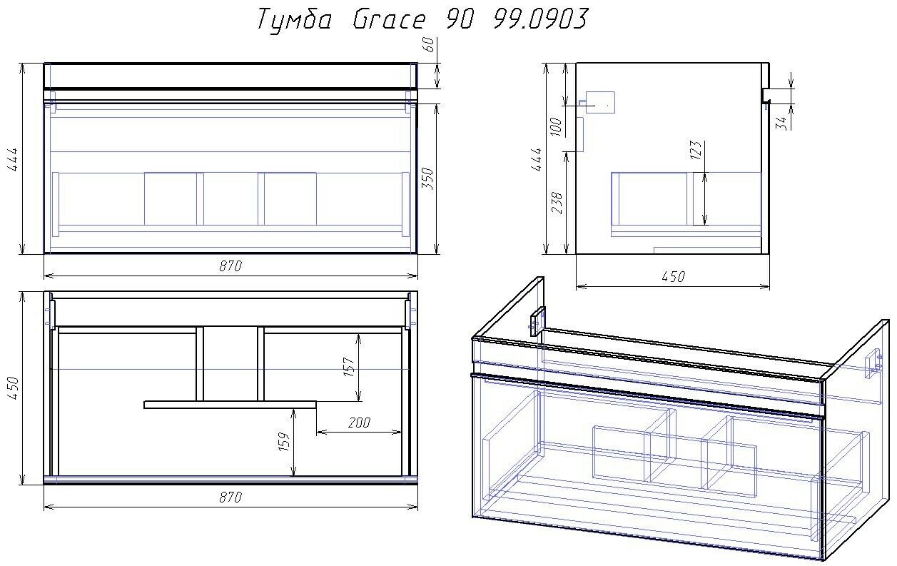 | Открывание | выдвижные ящики |