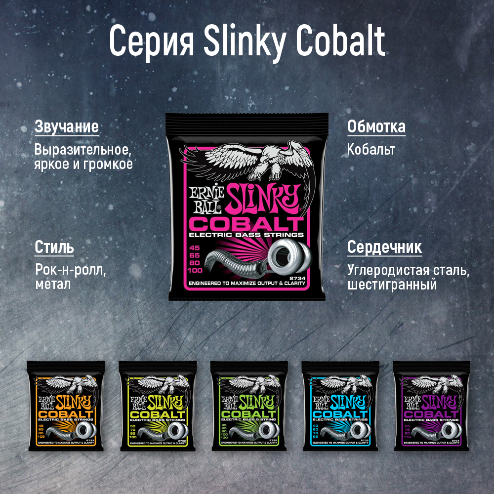 Струны Струны для бас-гитары Ernie Ball 2735 Cobalt Extra Slinky 40-95