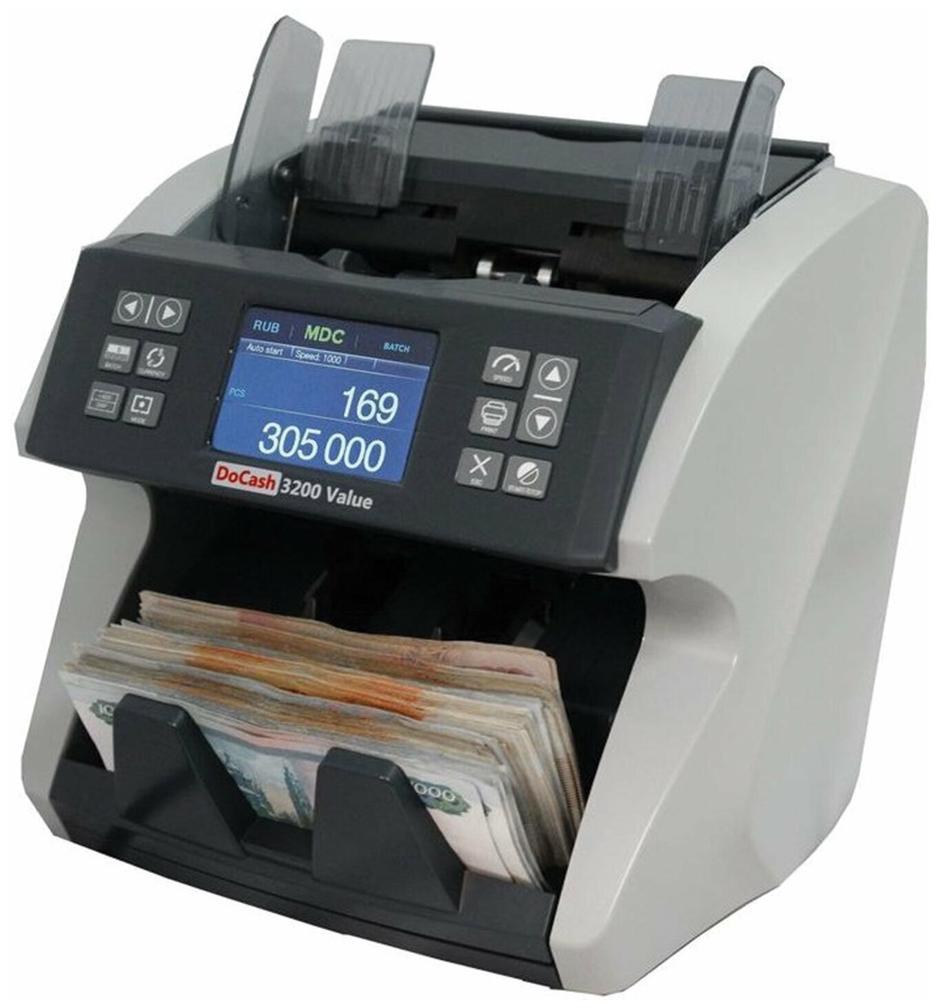 Счетчики банкнот и монет Счетчик-сортировщик банкнот DOCASH 3200 Value, 1500 банкнот/мин, УФ, ИК, магн детекция, номинал, фасовка, 1161