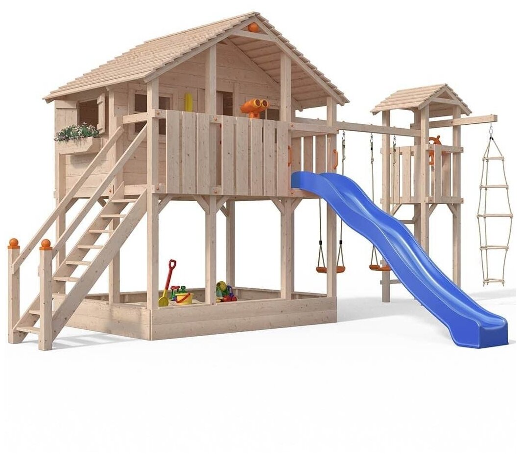Игровые и спортивные площадки Качельный модуль с башней ДНД Бормио на 2 места (спортивно-игровая площадка для дачи и улицы)