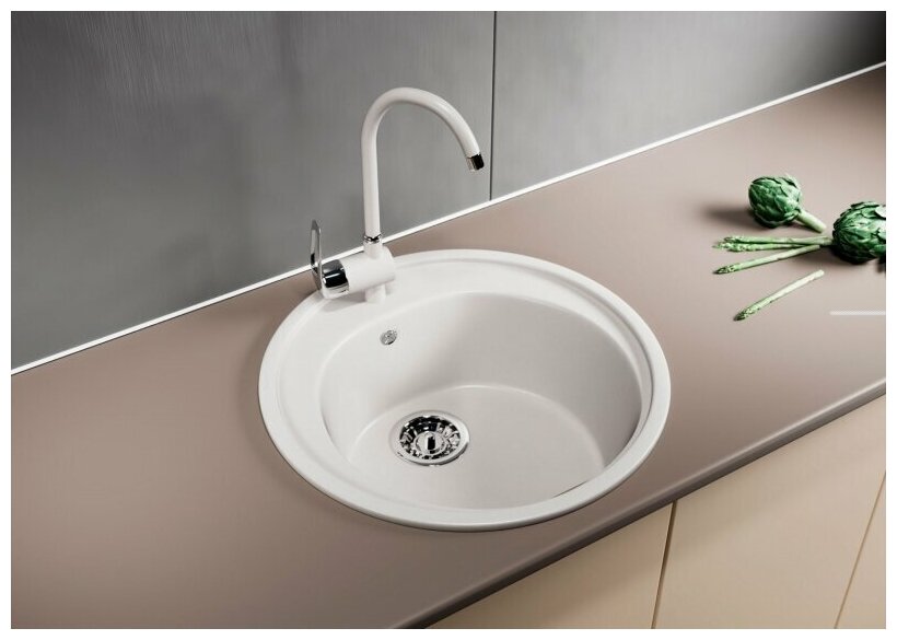 Кухонная мойка Мойкa ML-GM11 круглая, белый (331), 500мм (глуб. чаши 180)