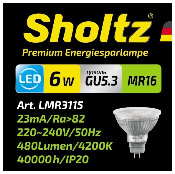 Лампочка Комплект из 3 светодиодных энергосберегающих ламп Sholtz софит MR16 6Вт GU5.3 4000K 220В стекло (Шольц) LMR3115T