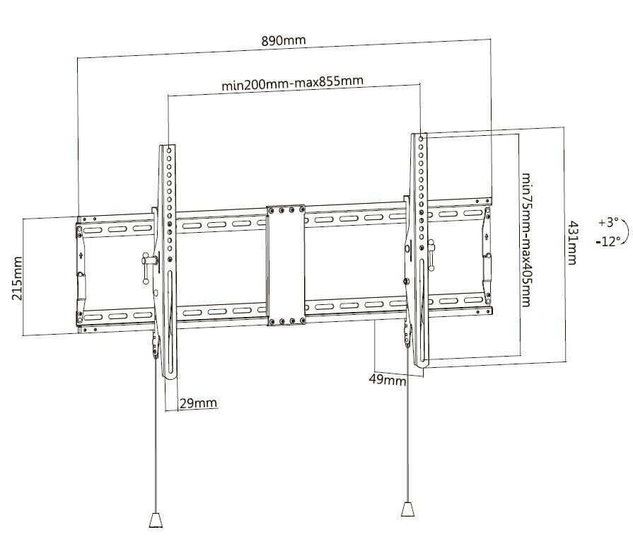 Лучшие цены. диагональ ТВ: 43 " - 90 ", регулировка : наклон +3°/-12° ,максимальная нагрузка: 70 кг, Стандарт Vesa: 300x200 мм, 200x200 мм, 300x300 мм, 400x200 мм, 400x300 мм, 400x400 мм, 600x400 мм, 800x400 мм, Расстояние от стены: 49 мм. Магазины в вашем городе.