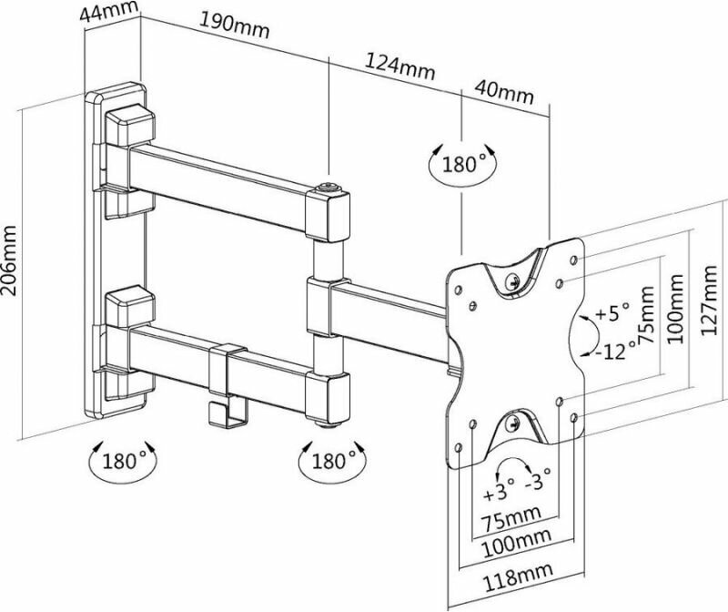 Лучшие цены. Наклонно-поворотный кронштейн со свободным наклоном и встроенной регулировкой уровня. Для использования с телевизорами 13"-27" весом до 20кг. Расстояние телевизора от стены 50-354мм. VESA 75x75,100x100. Возможен наклон до 12 градусов и подъем до 5 градусов. Поворот влево и вправо на 90 градусов . Есть регулировка экрана по часовой и против часовой стрелки на 3 градуса. Магазины в вашем городе.