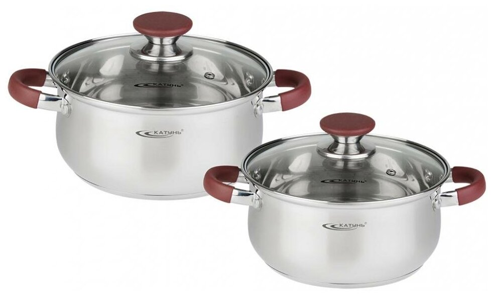 Лучшие цены. Общие характеристики Материал сталь Дополнительная информация материал крышек: стекло; материал ручек: сталь; многослойное дно Количество предметов 4 шт. Тип набор кастрюль Комплектация 2 кастрюли: 2л, 3л; 2 крышки Особенности мытье в посудомоечной машине, ненагревающаяся ручка, крышка в комплекте Основные характеристики Производитель Катунь. Магазины в вашем городе.