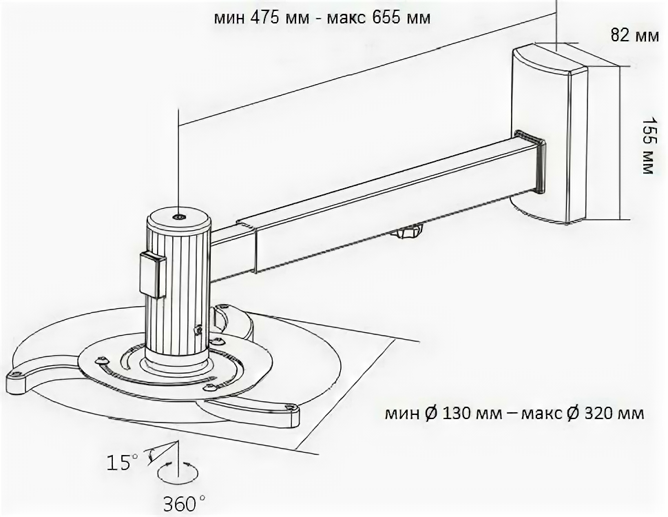 [WTH 4765] Универсальное настенное крепление Wize [WTH 4765] для УКФ проектора, расст. между крепеж. отверст. 320мм, наклон +15/-15°,вращение 360°, ка 2 557 ₽ Подробнее