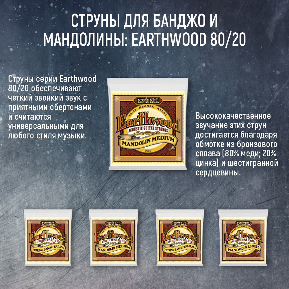 Струны Ernie Ball 2065 Earthwood 80/20 Bronze Medium Light струны для мандолины (10-14-24w-36)