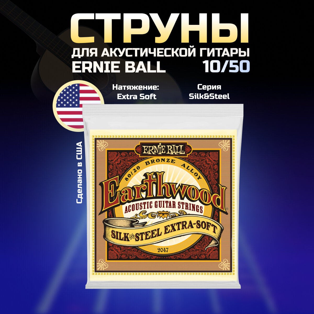 ERNIE BALL 2047 Earthwood Silk & Steel Extra Soft 10-50 Струны для акустической гитары