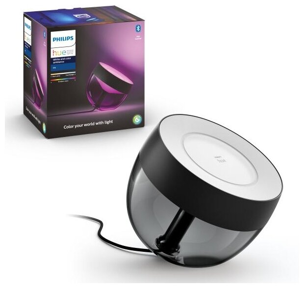 Лучшие цены. Создайте настроение в любой комнате вашего дома со стильным светильником Philips Hue Iris черного цвета. Благодаря свету, который одновременно раскрашивает стену и обеспечивает мягкую подсветку, светильник Iris создает изысканный и уникальный эффект. Добавьте блок управления Hue Bridge, чтобы воспользоваться полным набором функций умного освещения. Управление через приложения или голосом. Philips Hue работает с Alice, Siri и Google Assistant. Магазины в вашем городе.